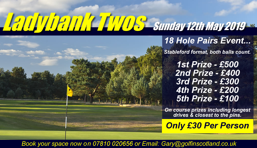 Welcome to the Golf In Scotland Twos Website! 2019 has got off to a great start with our Turnberry Twos and Kingsbarns Twos Events being a great success. Due to the great uptake on these events, we have decided to run a few more pairs events this year with our next event running at the fantastic Ladybank Golf Club on Sunday 12th May. The format is a pairs stableford, with both players scores at each hole counting towards their team's score. Both players will have to perform well to be crowned champions. The event is open to any combinaton of ladies and gents.